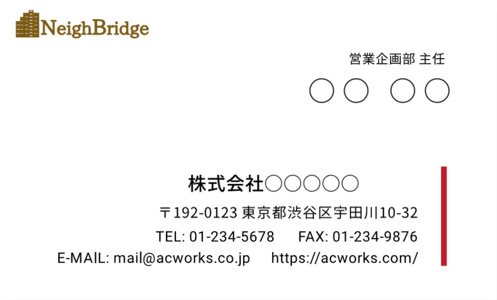 ネイブリッジサポート〒123-4567地球市未来町99-9 スカイビュータワー8FTEL:090-1234-5678E-mail:info@neighbridge.jp